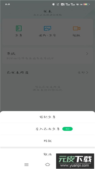 2、选择需要创作的内容形式,例如文章、图文或视频;以文章为例,点击“写新文章”进入编辑页面。