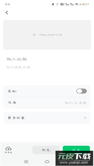 4、为文章添加封面与标题,根据实际情况选择是否声明原创并填写作者名称;确认无误后点击发表即可完成发布。