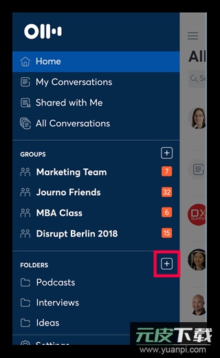 可通过创建文件夹整理录音内容;点击菜单中“文件夹”右侧的“+”图标新建文件夹。