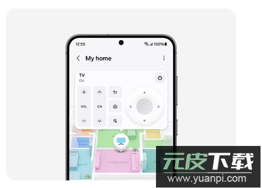 通过三星Galaxy手机查看并管理家中设备,呈现3D地图视角。