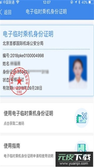 5. 等待审核通过后,即可查看并使用已生成的临时乘机证明。