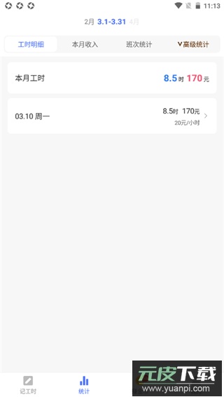 3、所有数据随记录实时更新,兼具记工时与查工资功能;