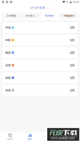 4、班次统计中,清晰展示早班、中班、晚班、夜班等各班次出勤天数。