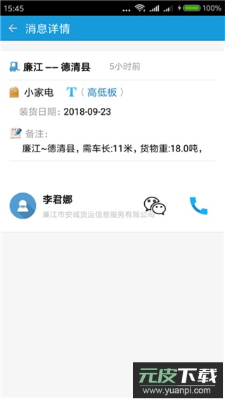 4、进入订单详情页面后,可直接联系货主进行沟通