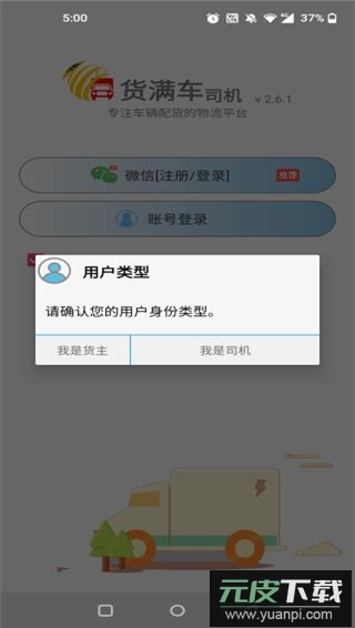 3、允许用户以货主或司机不同身份登录账号,适应多样使用场景;
