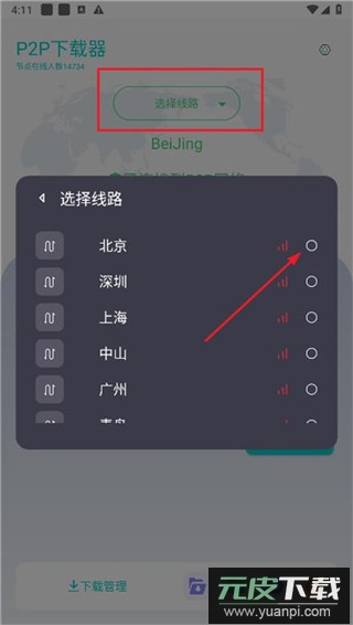 进入界面后点击“选择线路”,预先设置合适的下载线路;
