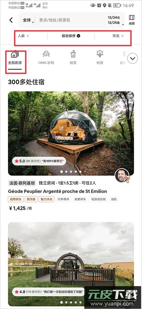 2、利用筛选工具快速定位符合要求的住宿类型。