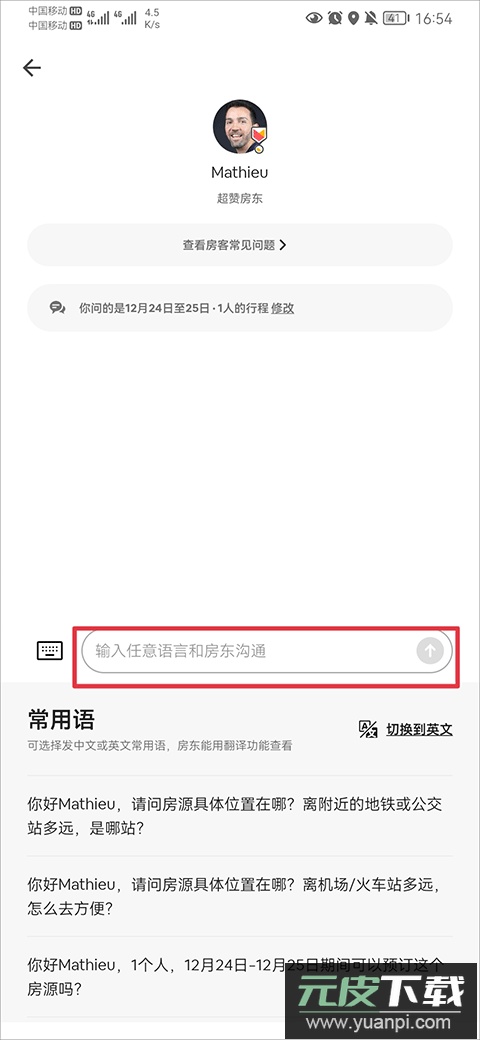 5、输入你想了解的问题并发送消息,即可开始与房主对话。