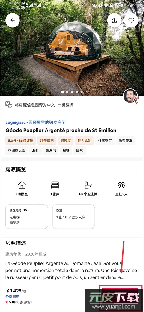 3、浏览房源详情页的照片与介绍,确认后点击预订并完成付款。