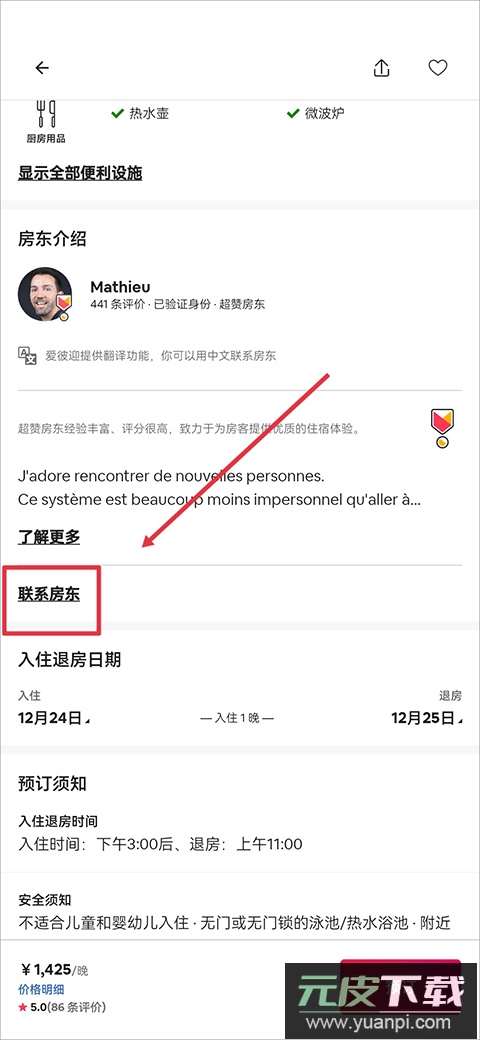 4、如需联系房主,可在房源页面找到并点击“联系房东”按钮。