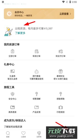 3、创建旅行计划,收藏心仪的住处和体验项目,并与朋友分享。