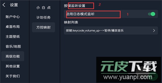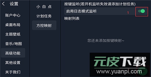 3、开启日志监听模式,路径为:桌面设置-高级设置-方控映射-打开图一所示开关;