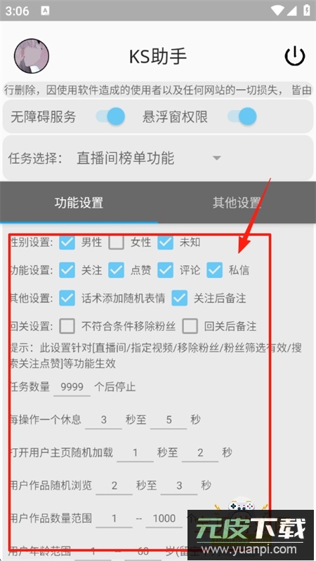 KS助手免费版最新2025版本是一款针对快手平台设计的脚本辅助工具,它集成了多种实用功能,用户可以根据需要选择不同任务类型,例如直播间榜单管理、指定视频操作、粉丝列表与群成员号码提取,以及搜索点赞关注等,同时支持自定义任务数量,整体操作流程简单直观,有需求的朋友可以下载体验。