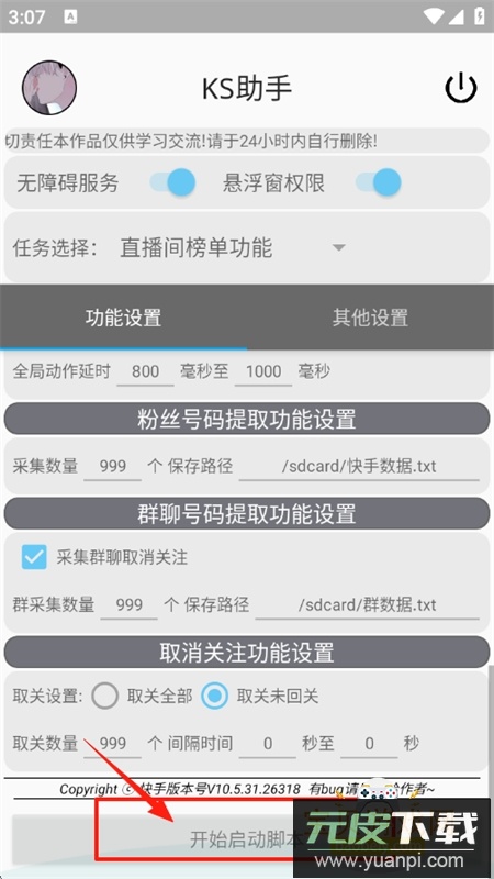 5、设置完成后滑动至页面底部,点击开始启动脚本;