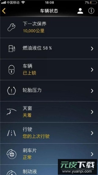 2、随时查看车辆状态信息,实时掌握爱车情况;
