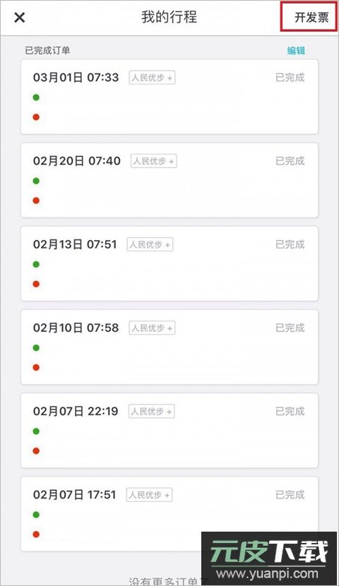 2、在行程列表中找到需要开票的行程记录,点击“开发票”功能键。