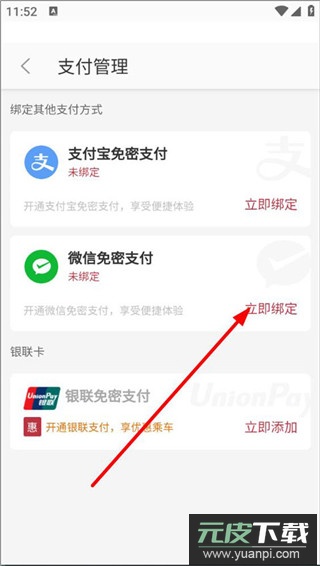 3、跳转至支付管理页面,绑定支付宝、微信或银联卡其中一种支付方式;