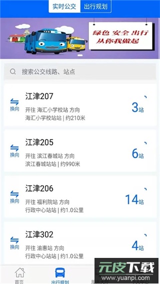 2、点击出行规划功能,可查询或选择适合的乘车路线;