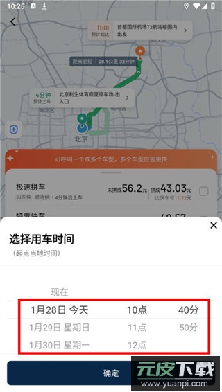 3、进入预约界面,选择您需要用车的具体日期与时间;