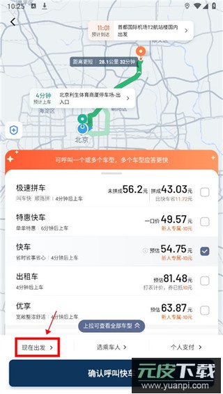 2、填写目的地后,点击页面下方显示的现在出发按钮;