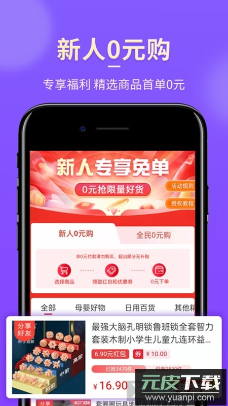 2、接入移动互联网主流网购平台,精选全品类商品,配套海量专属优惠券;