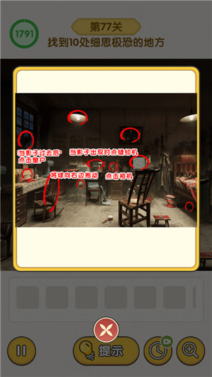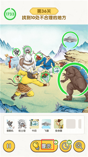 2、在场景中找出10处不符合逻辑的元素,若遇到困难可借助提示功能;