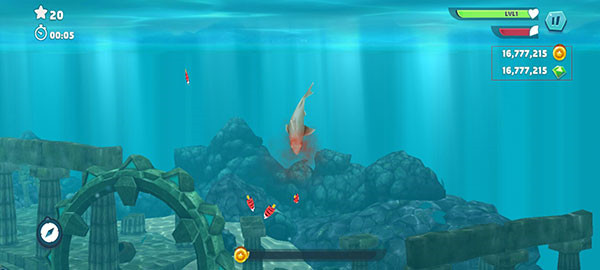 不要只盯着高分值的大鱼,忽视小鱼。鲨鱼的饥饿度会随游动距离增加,不及时进食容易导致死亡。因此需保持捕食频率,不论目标大小。