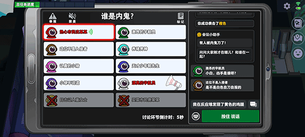 3、内置语音交流功能,发现尸体后可召集会议讨论,帮助玩家推理出其他人的身份。