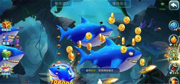 2、设有引人入胜的多人对战,玩家可在千炮模式中与真人同场竞技,争夺渔场之王的荣誉;
