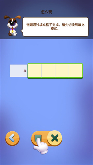 1、打开游戏,谜题需要通过填充格子完成,先切换到填充模式。