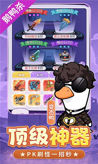 1、角色采用卡通风格,玩家将操控一只可爱的鸭子,而对手则包括猿猴、老鼠与怪兽等多种形象;