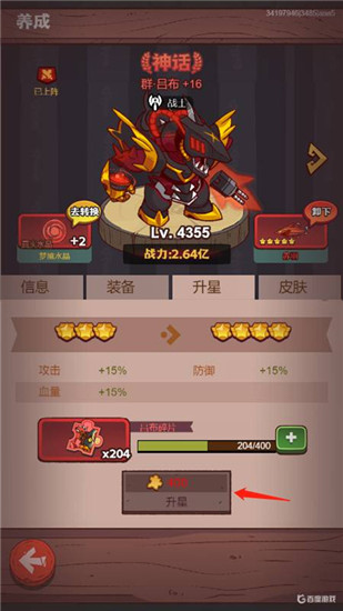 3、满足条件后,通过点击升星按钮即可激活技能。