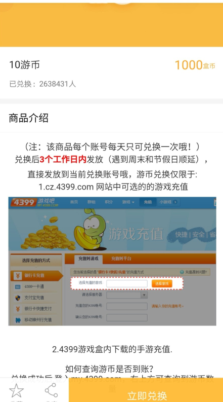 3、盒币可以按比例兑换为“游币”,例如1000盒币可兑换10游币;
