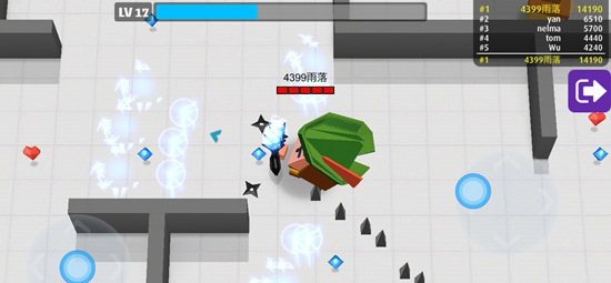 游戏核心特色是丰富的随机技能系统;每局对战中,玩家每次升级可从三种随机技能中选取一项;诸如激光枪、三连发、吸血光环、连续发射等上百种技能可自由叠加组合,使每局的成长路线和最终玩法都独一无二,充满策略与惊喜。