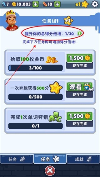 点击“任务中心”会看到分数等级任务,完成分数等级任务的三个子任务即可升级等级即提升倍数;