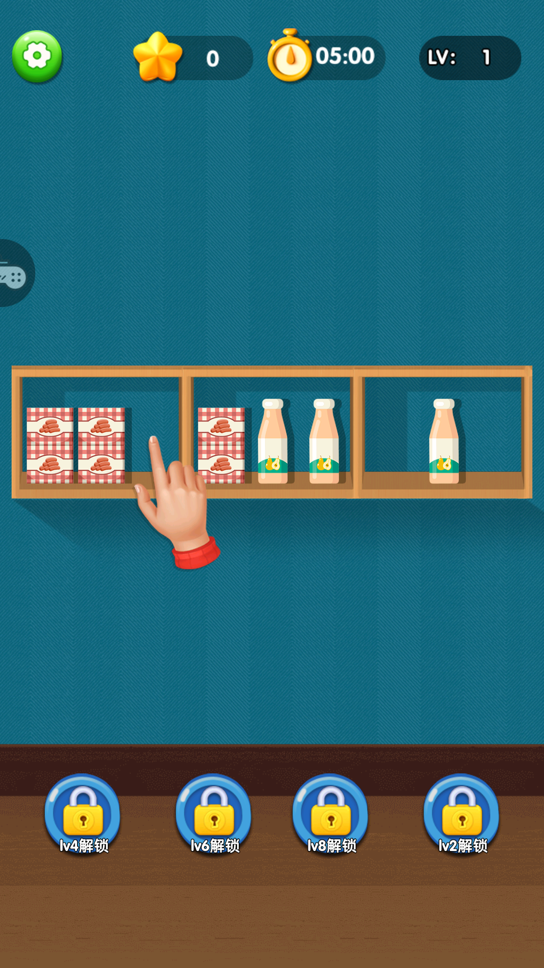 1、把三个相同的物品放到同一个货柜格子上就能触发消除;