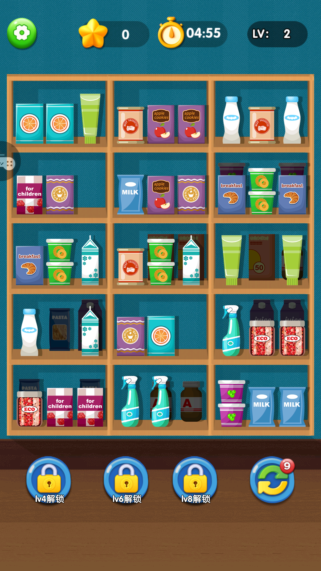 这款游戏不止基础消除玩法有趣,还加入了很多特殊道具和捣蛋小障碍,让玩法更有新鲜感和挑战性,每关都设置了专属通关小目标,要么需要消除指定数量的对应货物,要么需要在规定时限内完成消除要求,需要玩家多动脑子规划操作路径才能完成,关卡越往后难度越高,货物数量更多、品类也更繁杂,长期玩也能锻炼思维的灵活度。