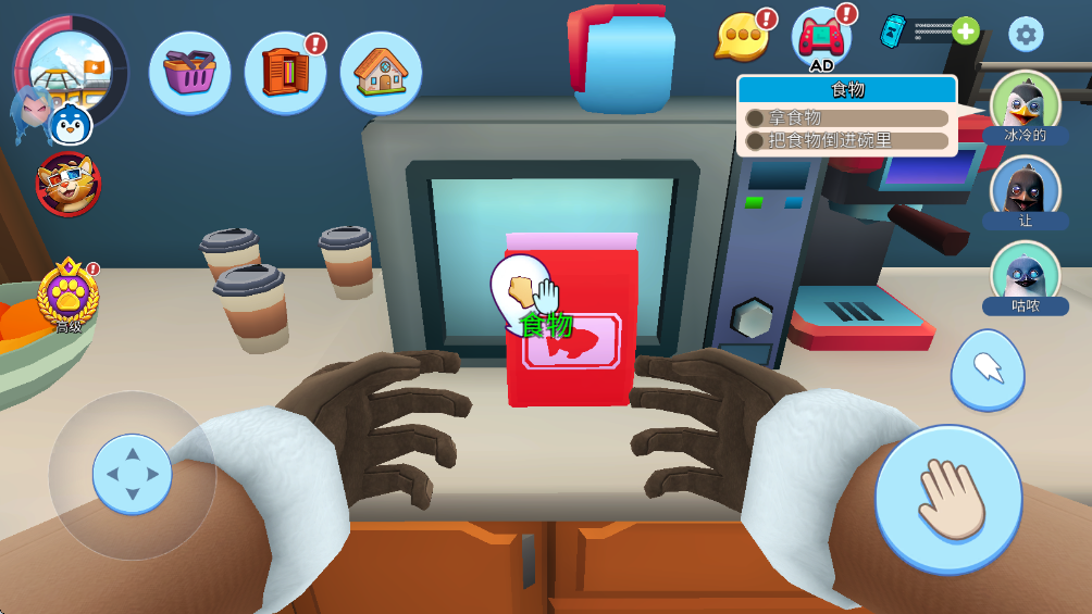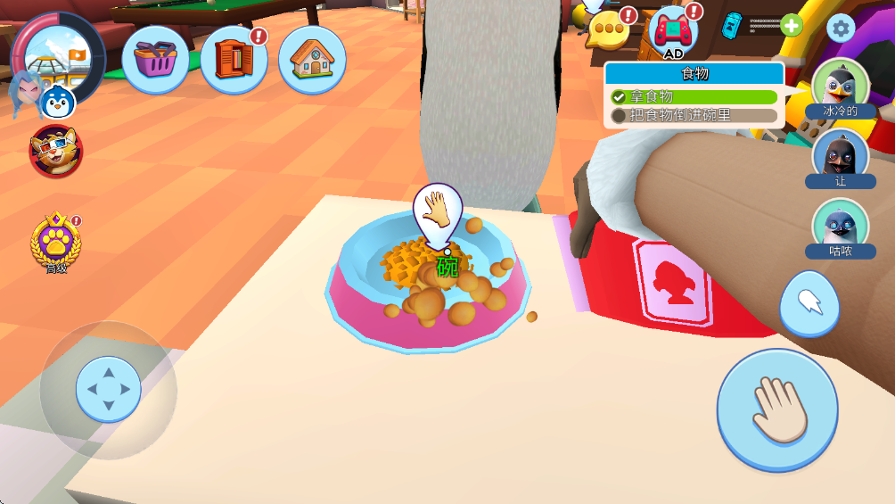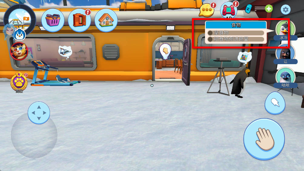 2. 推动虚拟摇杆控制企鹅移动。