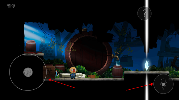 4、利用画面上的虚拟操控盘,你可以指挥角色移动或执行跳跃动作。
