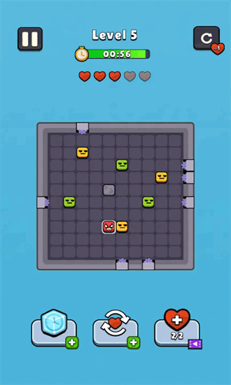 愤怒方块的游玩体验十分流畅,操作跟手没有丝毫迟滞感,游戏内玩家的核心目标是控制方块撞击到对应正确位置,内置超多不同难度的关卡供玩家解锁挑战。碰到卡关的高难度关卡时可以借助道具降低通关门槛,每一关都有固定时间限制,玩家最好提前构思好最优通关方案,才能在规定时间内顺利完成挑战。