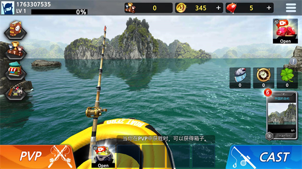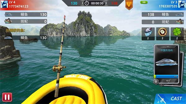 7、比赛开始后点击cast抛竿钓鱼,成功钓获指定鱼类可获得积分;限定时间结束后,积分更高的一方获胜。