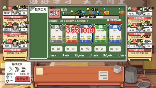 搭配逻辑:围绕笔记本加骰子构建核心教具组合,最大化知识获取与教学分数;通过牌组升级删除低效卡牌,提升整体牌型质量;灵感工具仅在教具不足时作为补充手段。