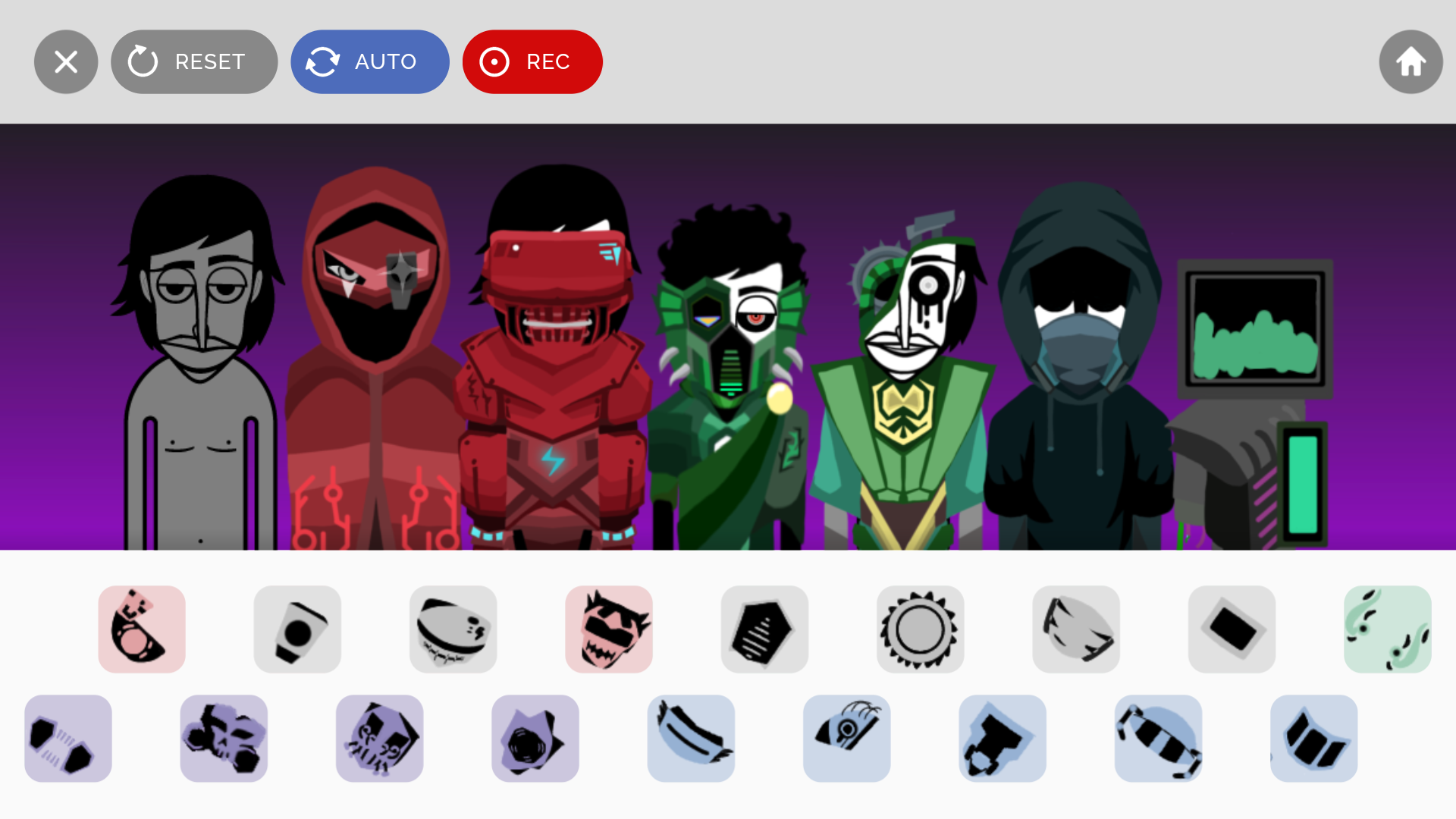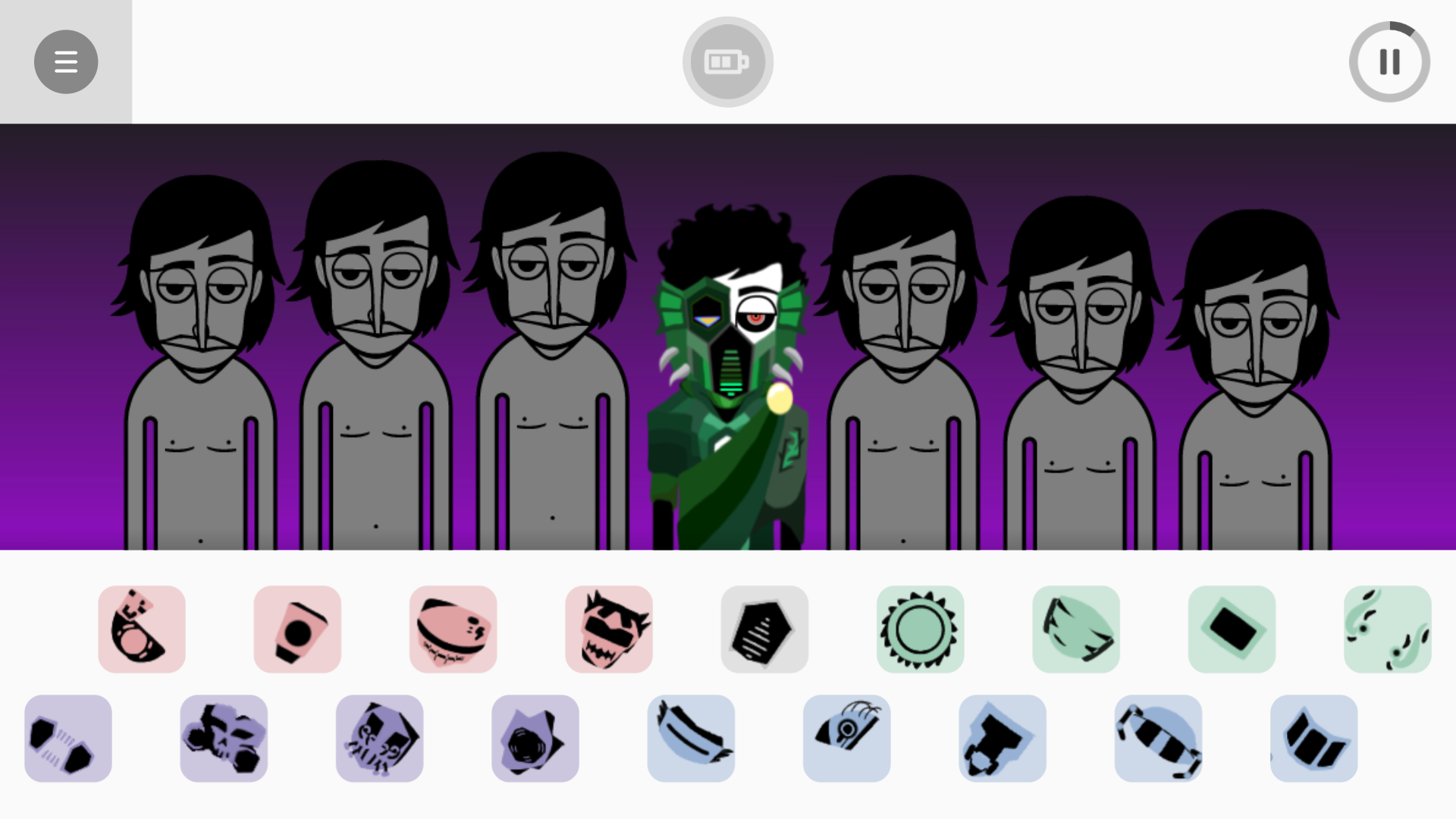 节奏盒子deadinside模组的上手门槛很低,进入游戏界面后,会先出现七个初始外观完全一致的角色,页面下方排布着不同样式的音乐符号类乐器图标,把图标拖拽到对应角色身上,角色就会自动换上对应音效的专属装扮,同时持续播放对应音效。场上七个角色最多可以同时承载七种不同音效,玩家可以自由搭配组合出整首节奏饱满的音乐,尽情释放自己的创作天赋。