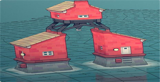 4、在两栋相邻的房屋上方再叠加一栋房屋,就能触发钩子特效;