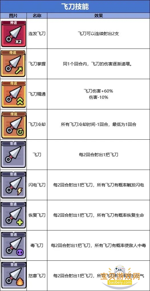 推图核心技能: 连发飞刀、飞刀冷却、飞刀掌握