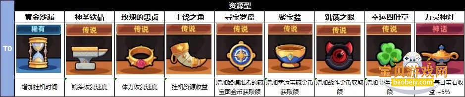 主要关注恢复速度、资源收益与金币获取这几类;