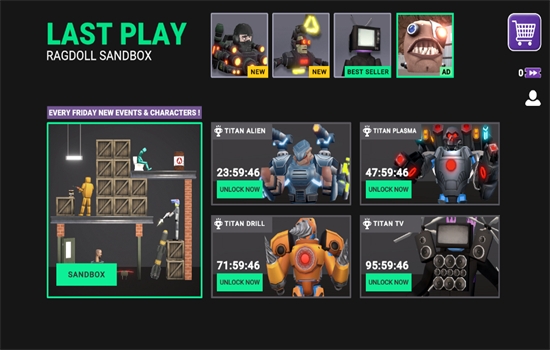 1、游戏包含沙盒模式、SKIBIDI DJ、TITAN TVMAN以及TITAN SPEAKERMAN等多种模式供选择。