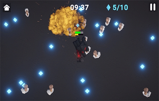 4、在TITAN SPEAKERMAN模式里,使用火箭炮轰炸出现的马桶人,并收集散落的方块,体力耗尽则游戏结束。