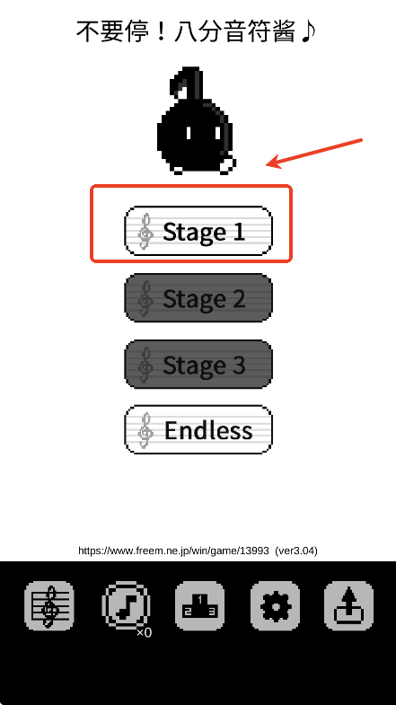 玩家操控名为“八分音符酱”的可爱音符角色,目标是安全抵达每关终点的旗帜处。