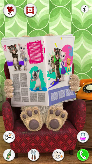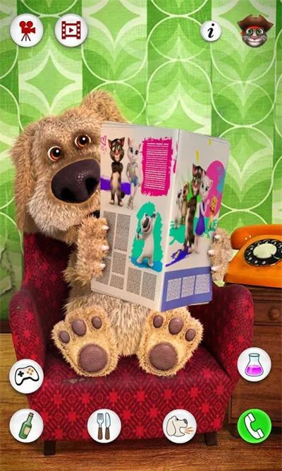 3、点击本的报纸看看它的反应,对它说话,它会模仿你的声音;